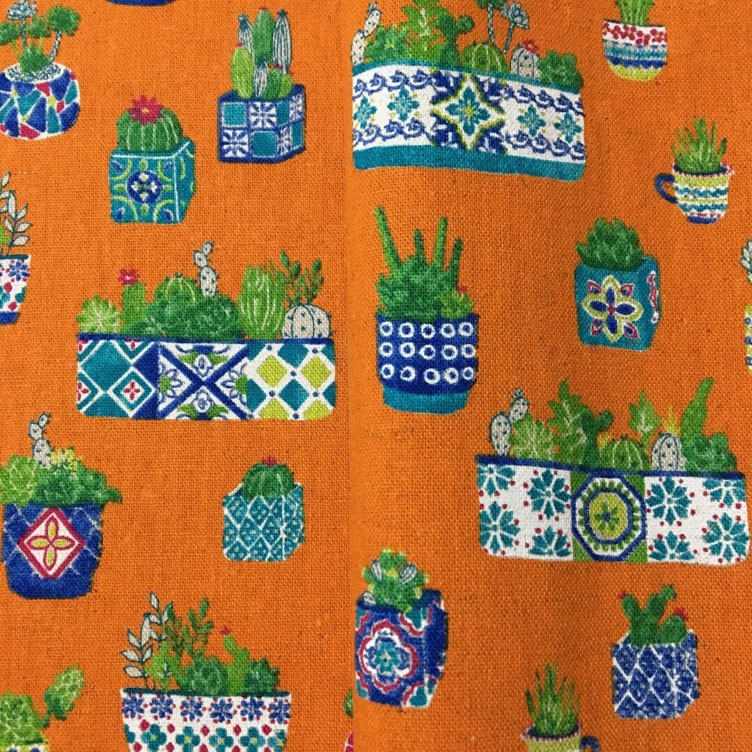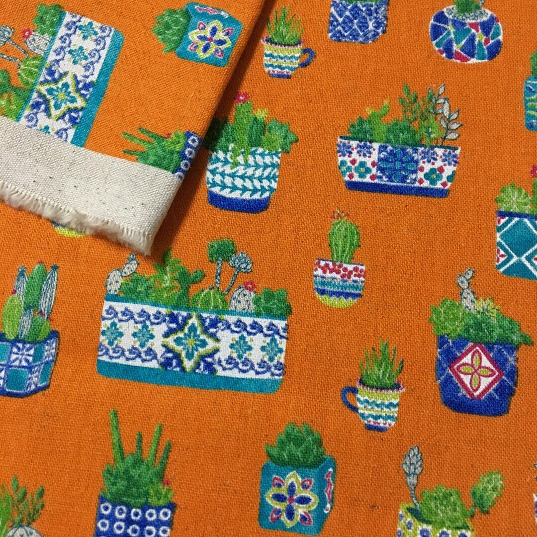meguru*1m【綿麻キャンバス地 生地】東欧 プランター 花柄 綿麻キャンバス 多肉植物 生地 ハーフリネン バック しっかり目 小物 ハンドメイド