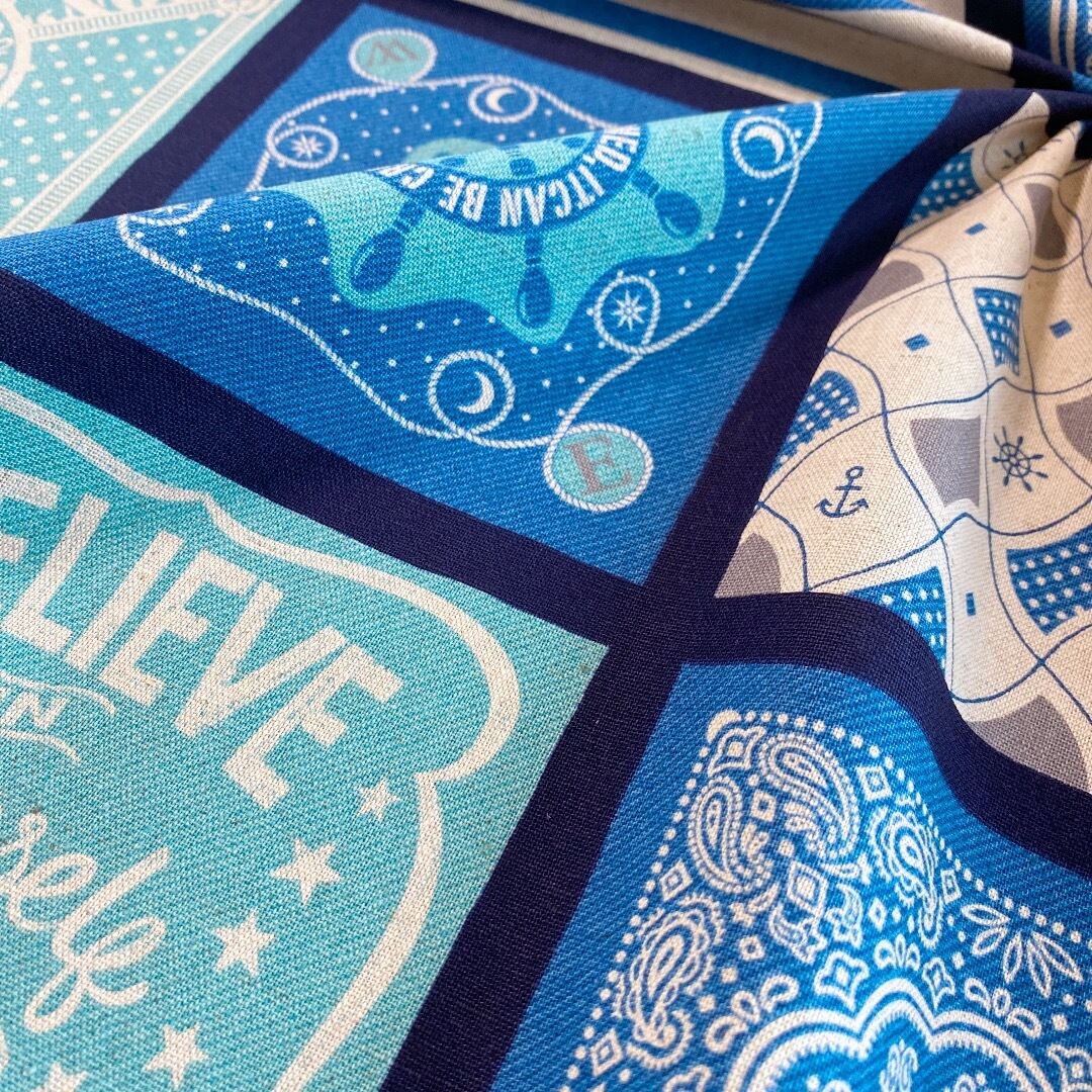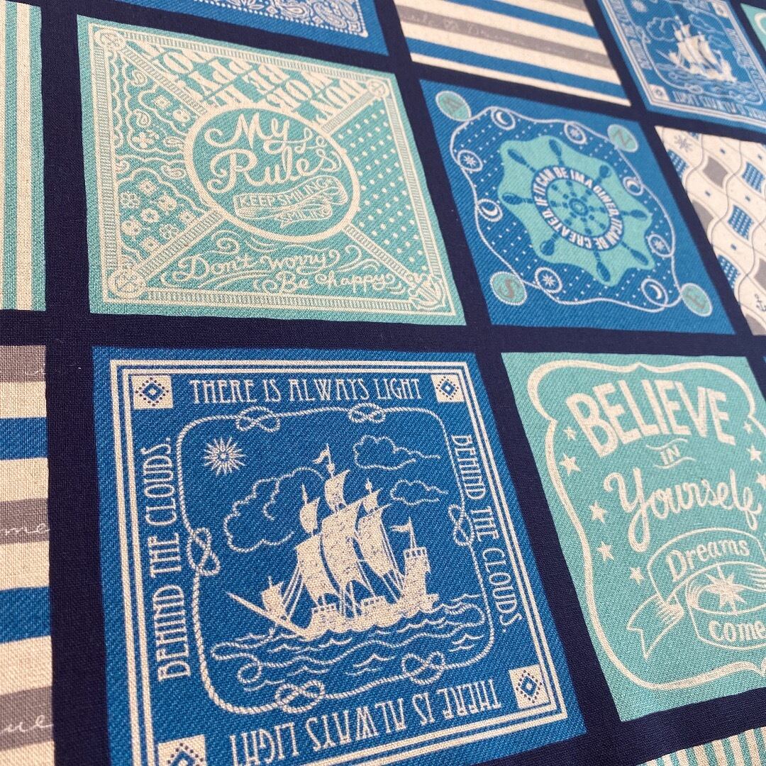 1m*送料無料 KOKKA パッチワーク風 マリン 綿麻キャンバス*ネイビー