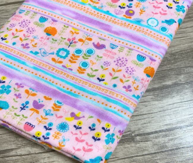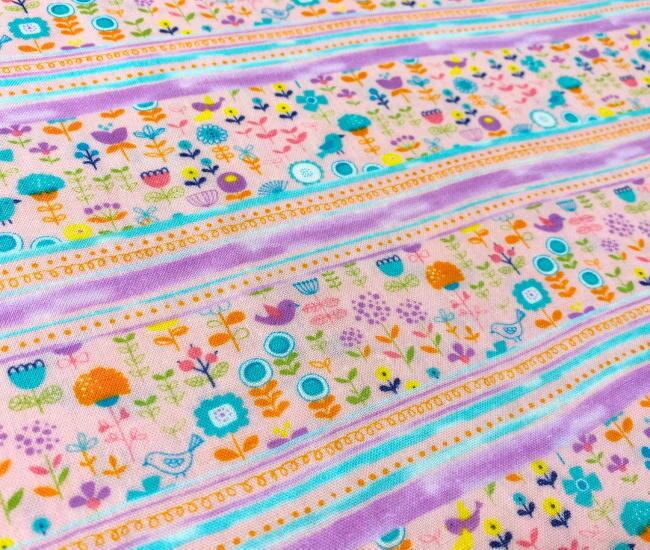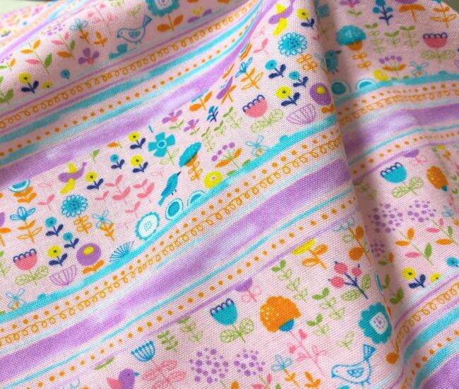 1mカット*送料無料 北欧風ダブルガーゼ生地 ボーダー花柄 日本製 ピンク
