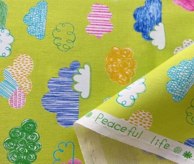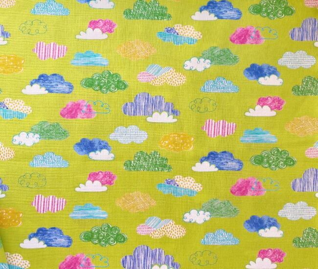 生地 シーチング 雲柄 空 グリーン 2mカット